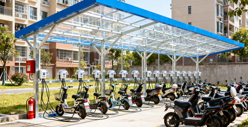 Safety monitoring and automatic fire extinguishing for electric bicycle charging stations